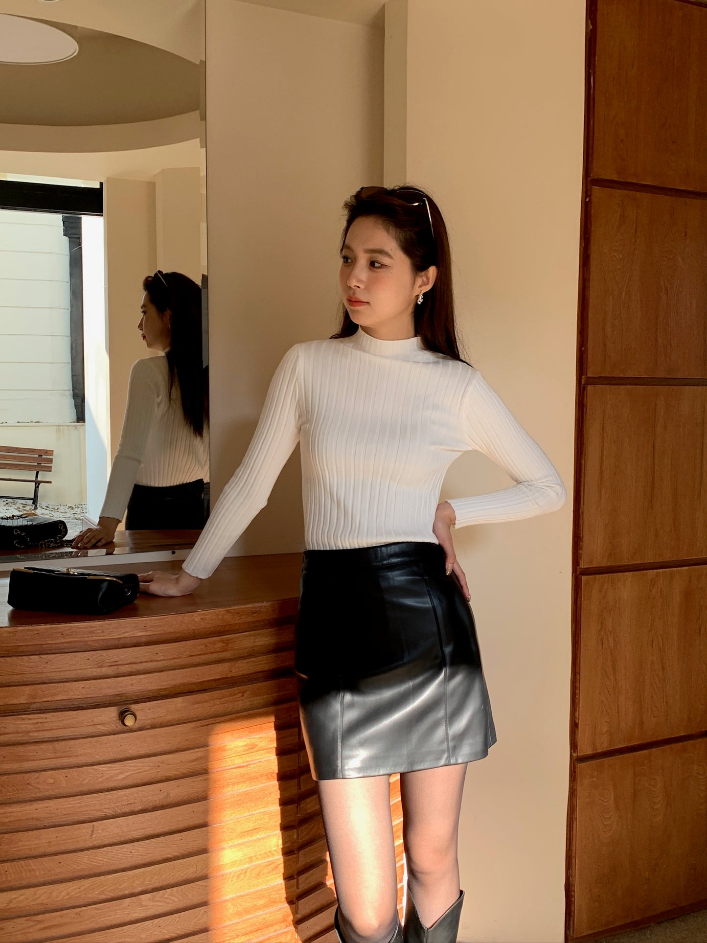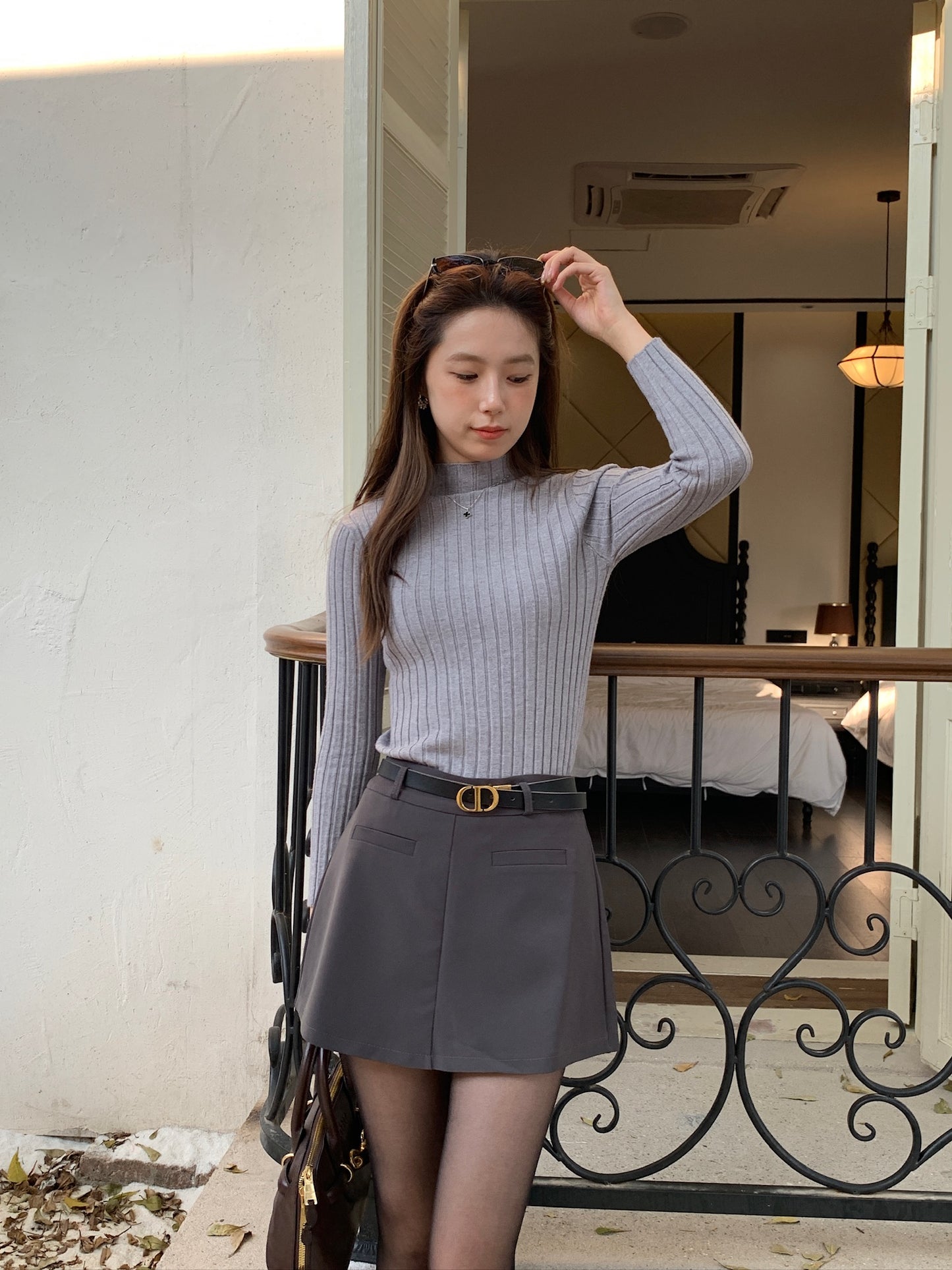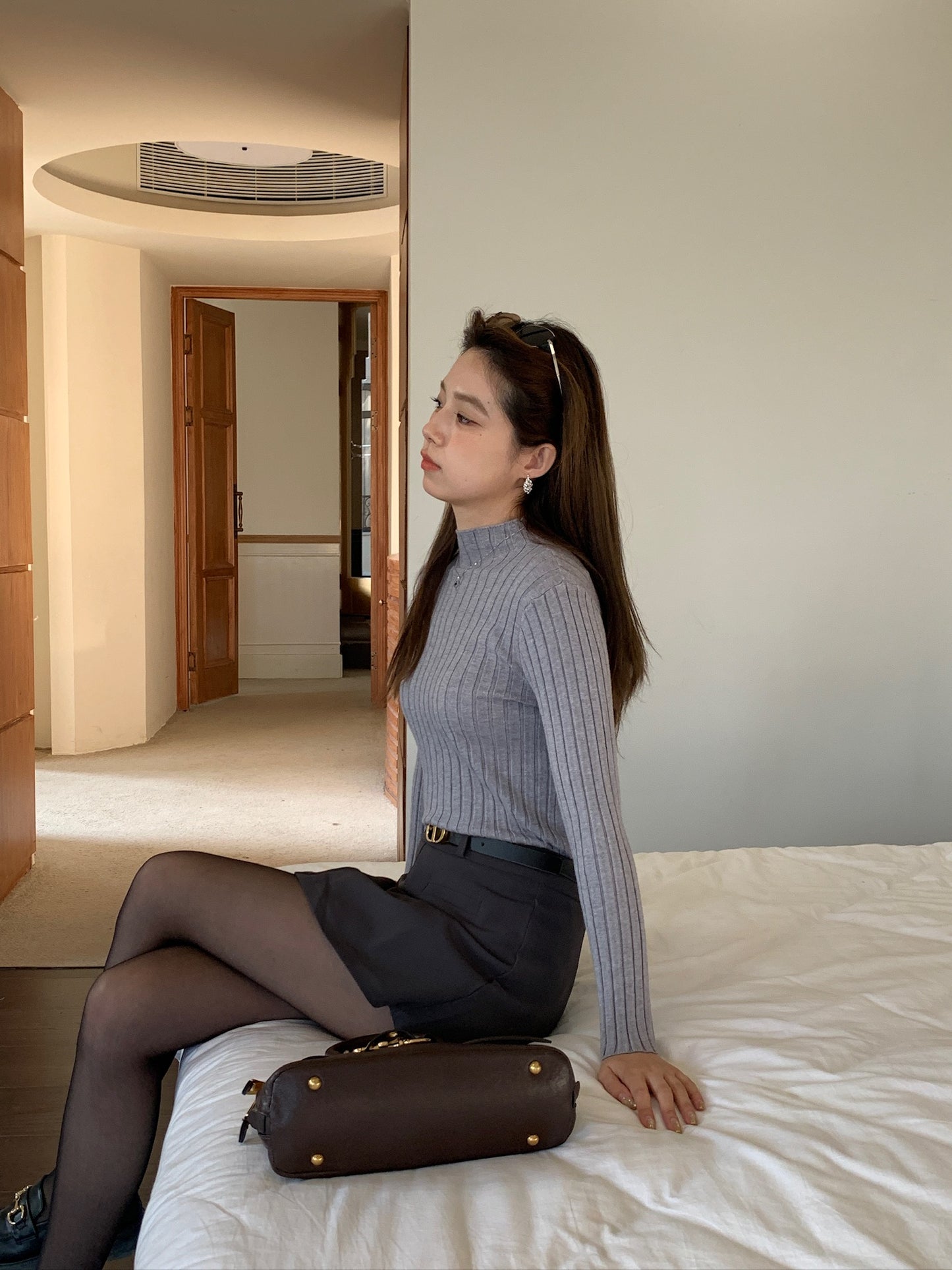 基礎薄針織小高領上衣