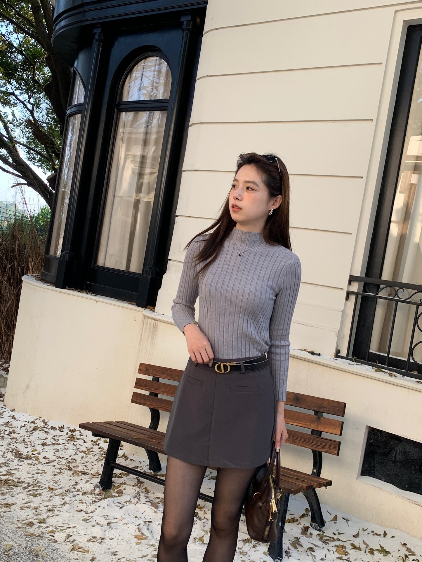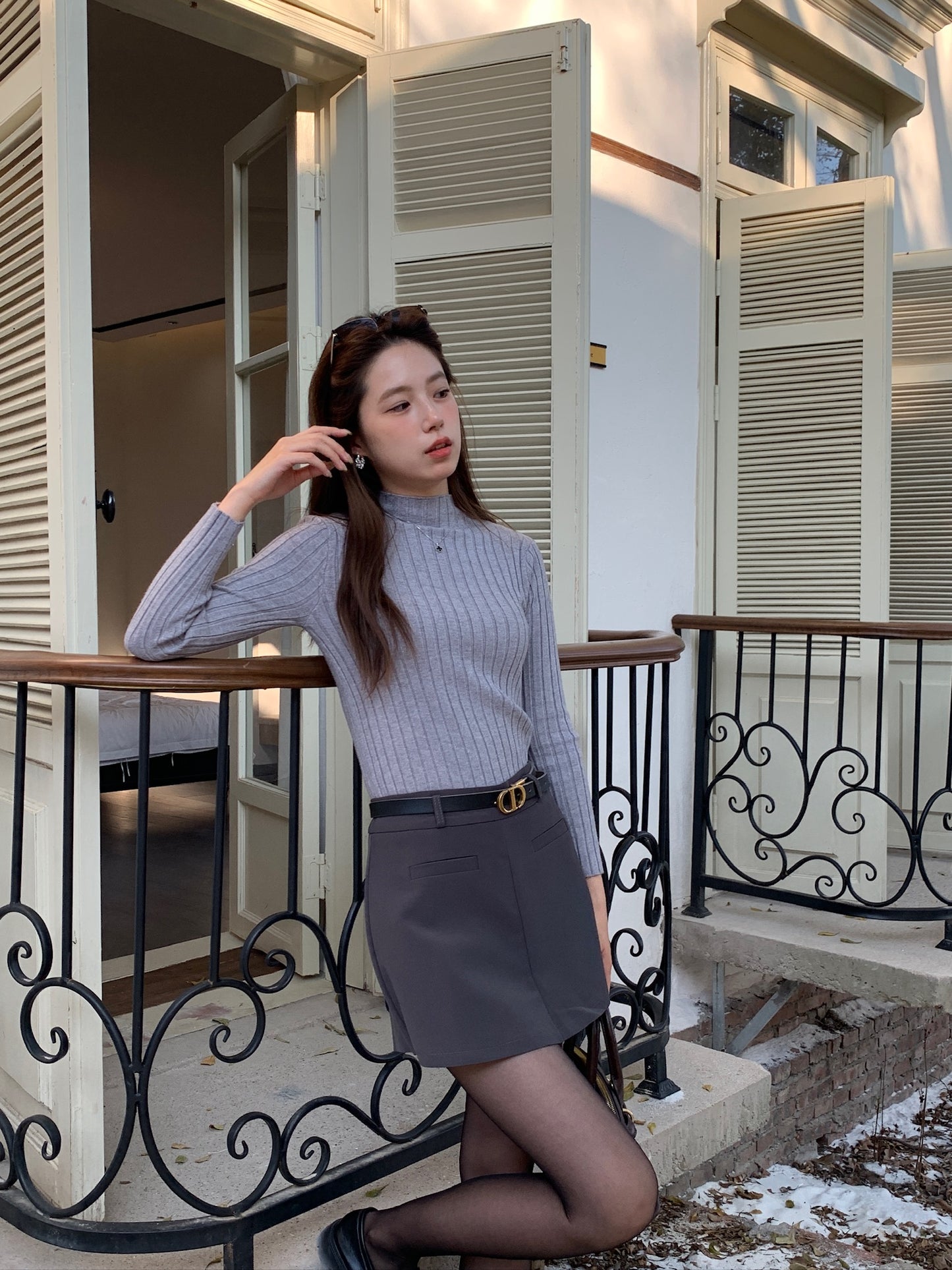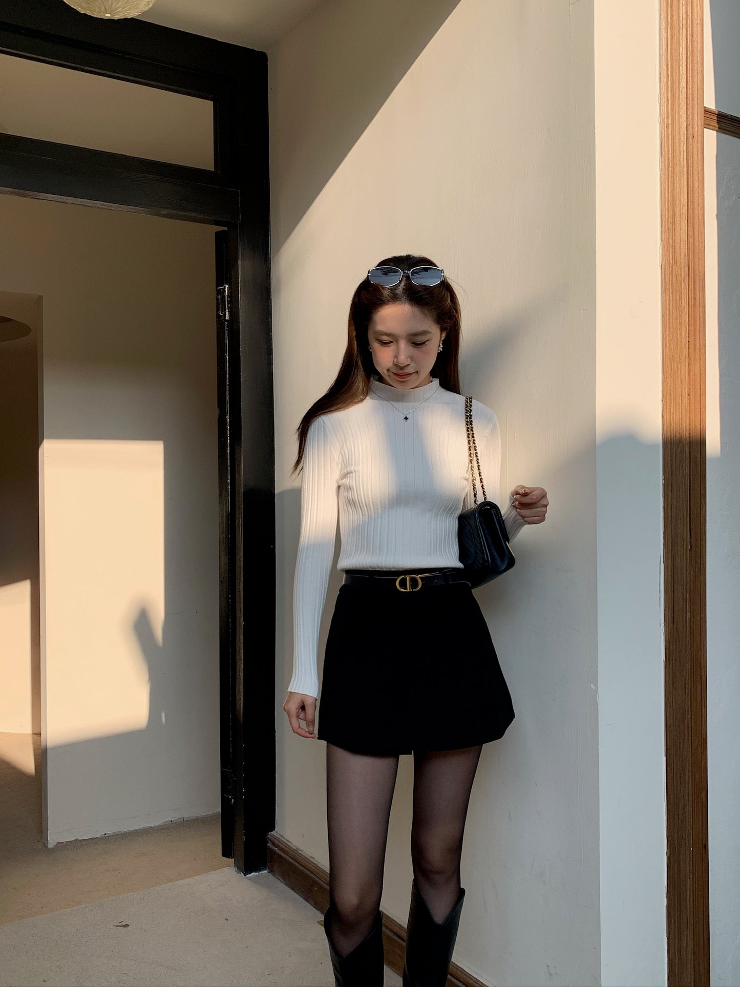 基礎薄針織小高領上衣
