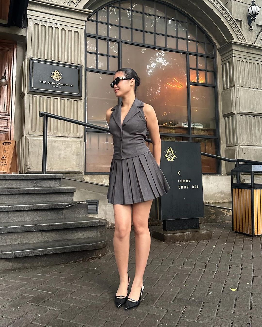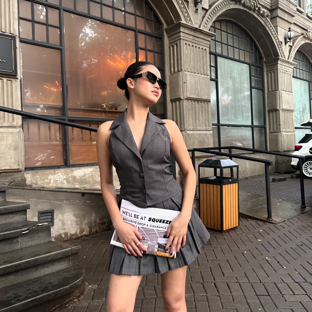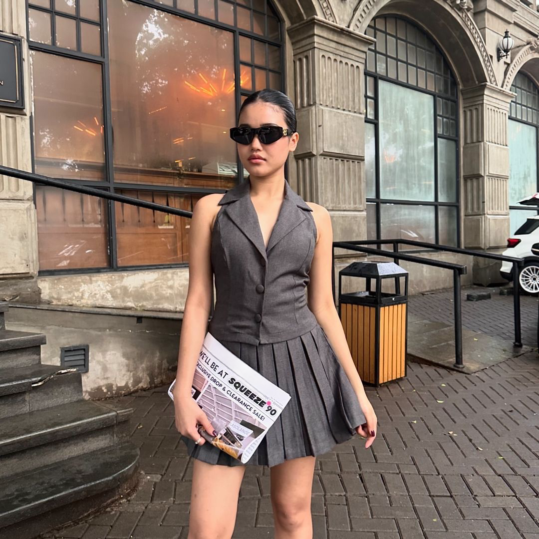 下半身百摺裙 同樣採用SEMIWOOL材質