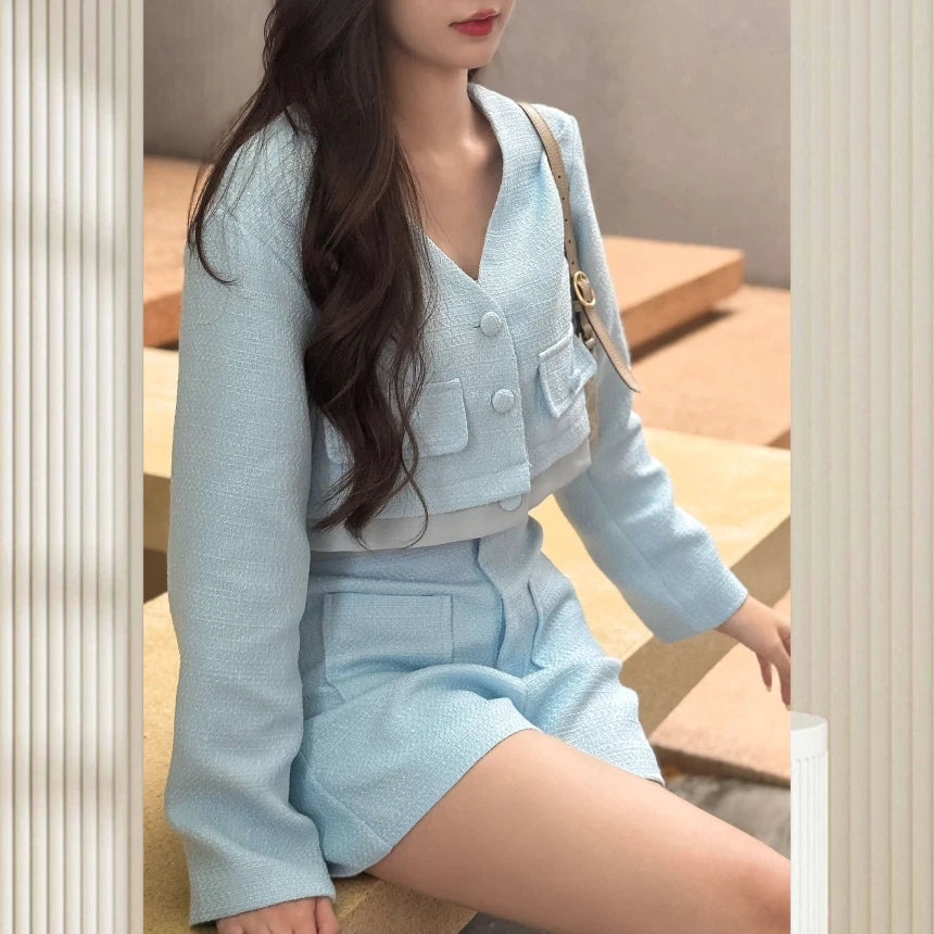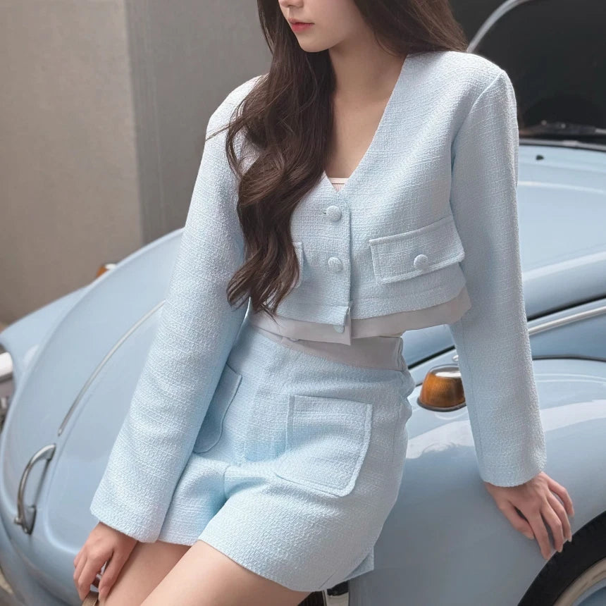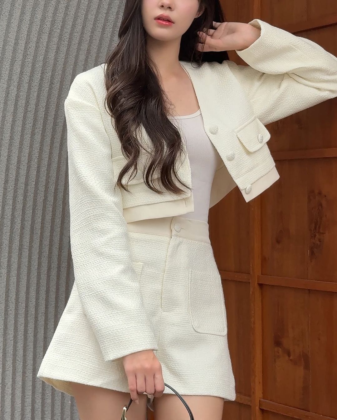 極高質感✨Tweed套裝:短身外套 + 高腰短褲