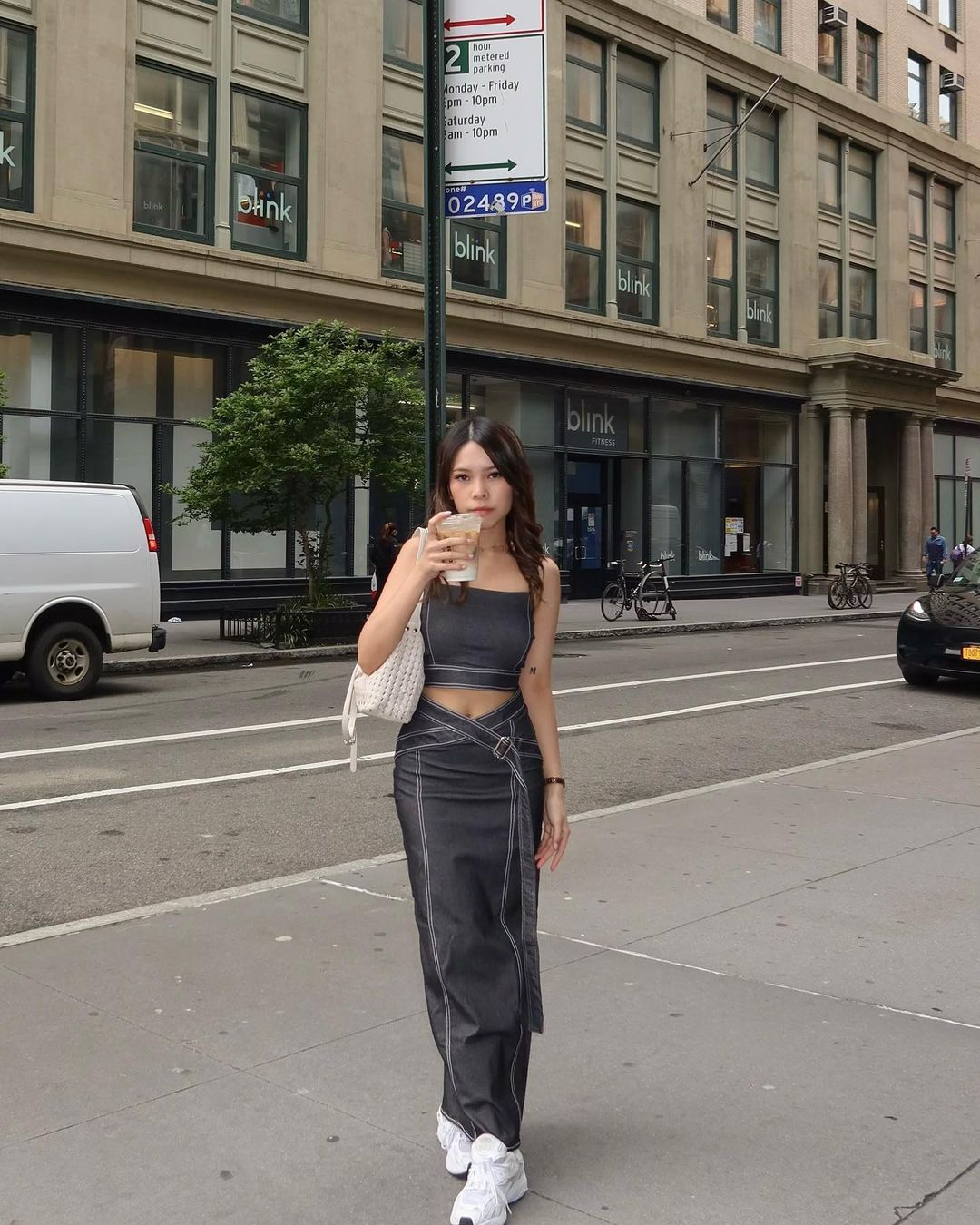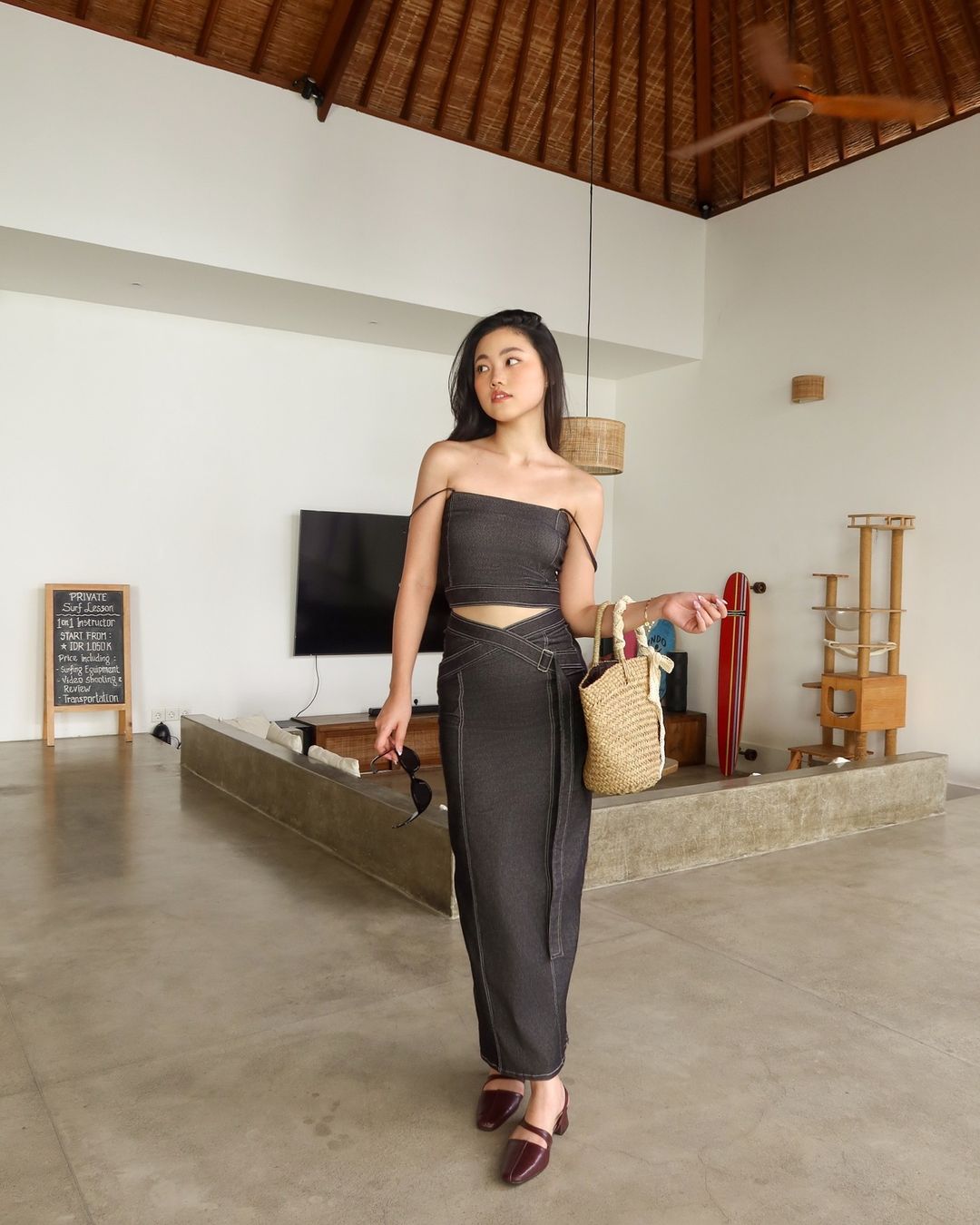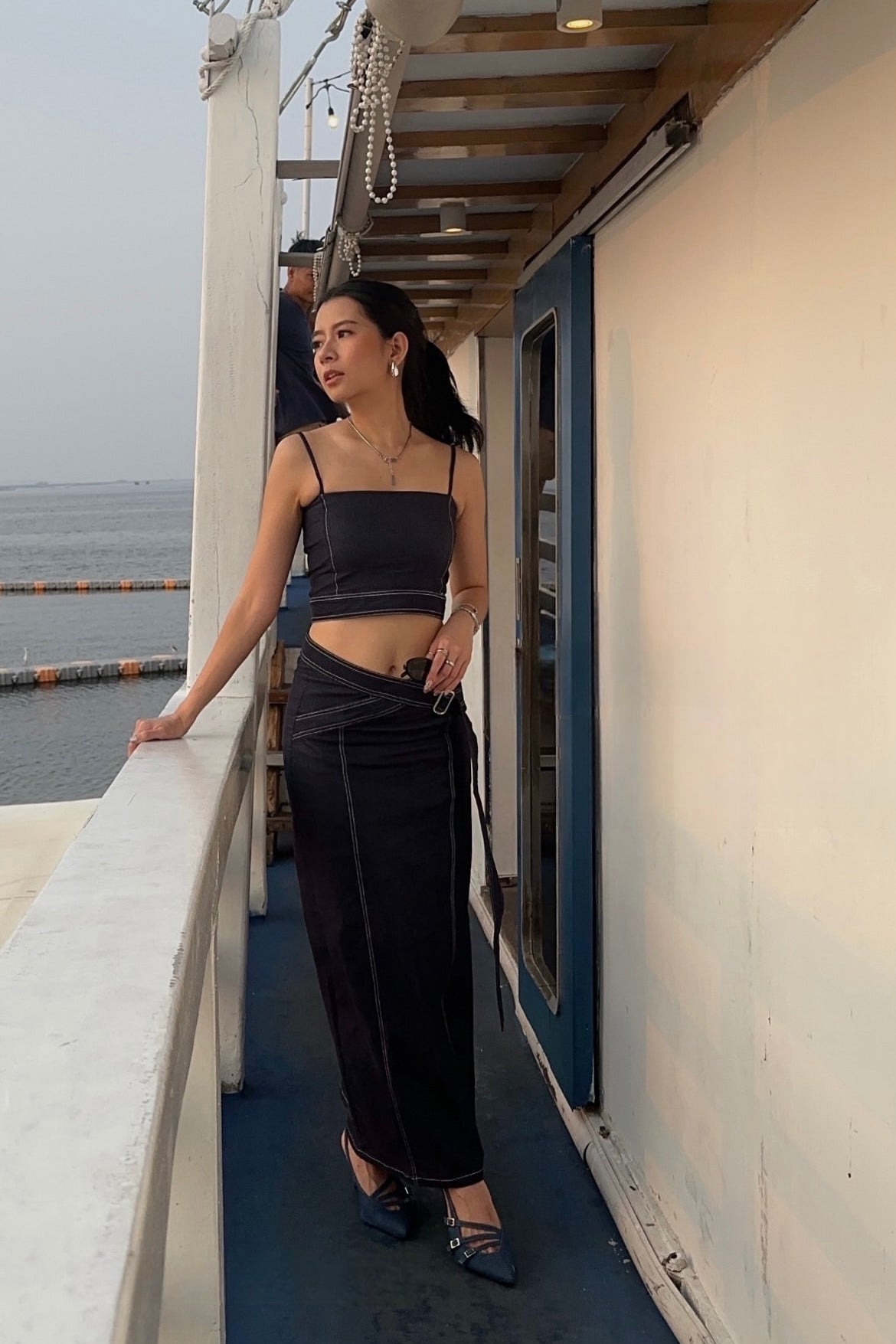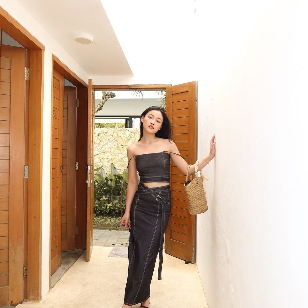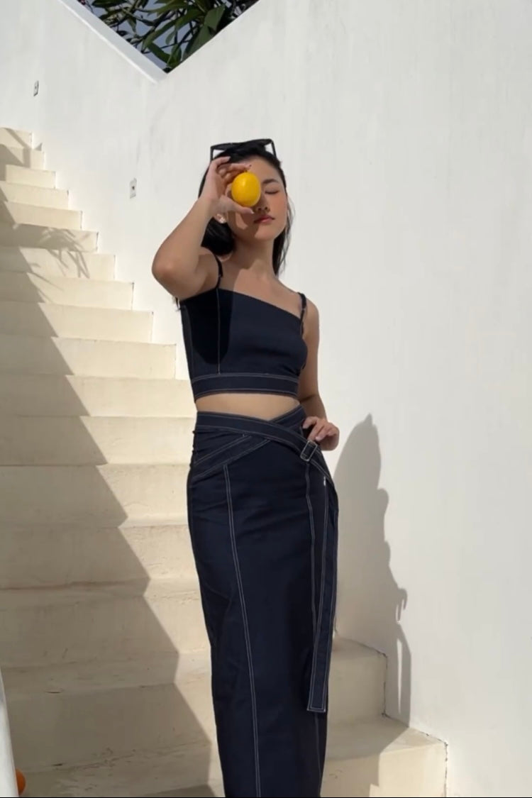 套裝:牛仔吊帶上衣 + 半身長裙